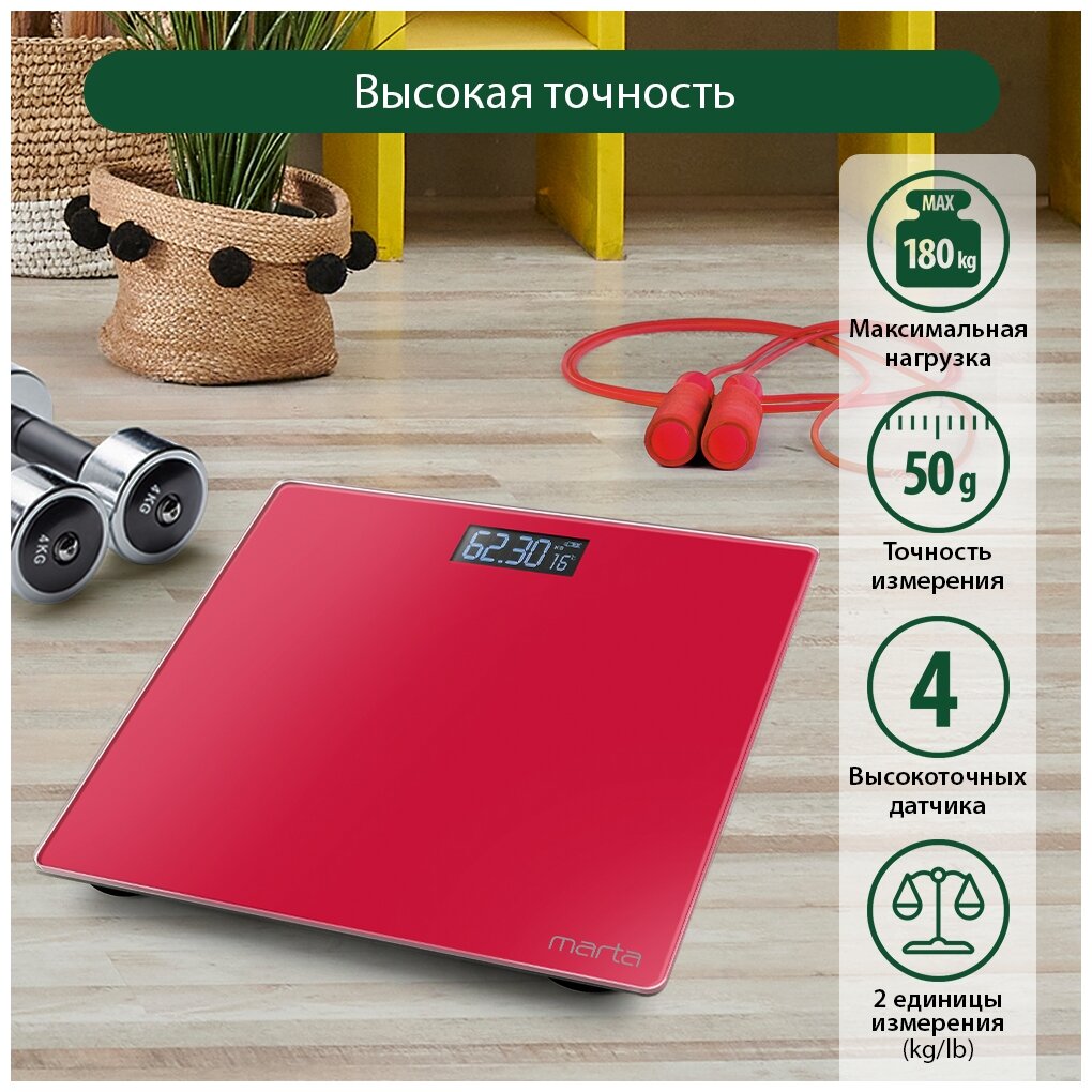 Купить Весы напольные MARTA MT-1610 красный рубин сенсор, встроенный термометр