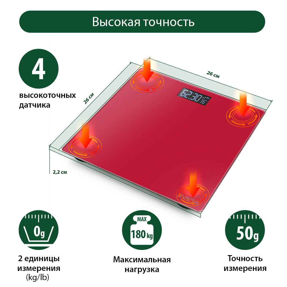 Marta MT-1610 бордовый гранат весы напольные сенсор .