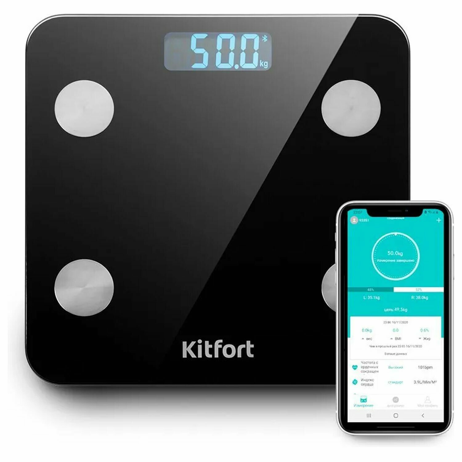 Весы напольные диагностические KITFORT КТ-805, электронные, вес до 180 кг, квадрат, стекло, черные