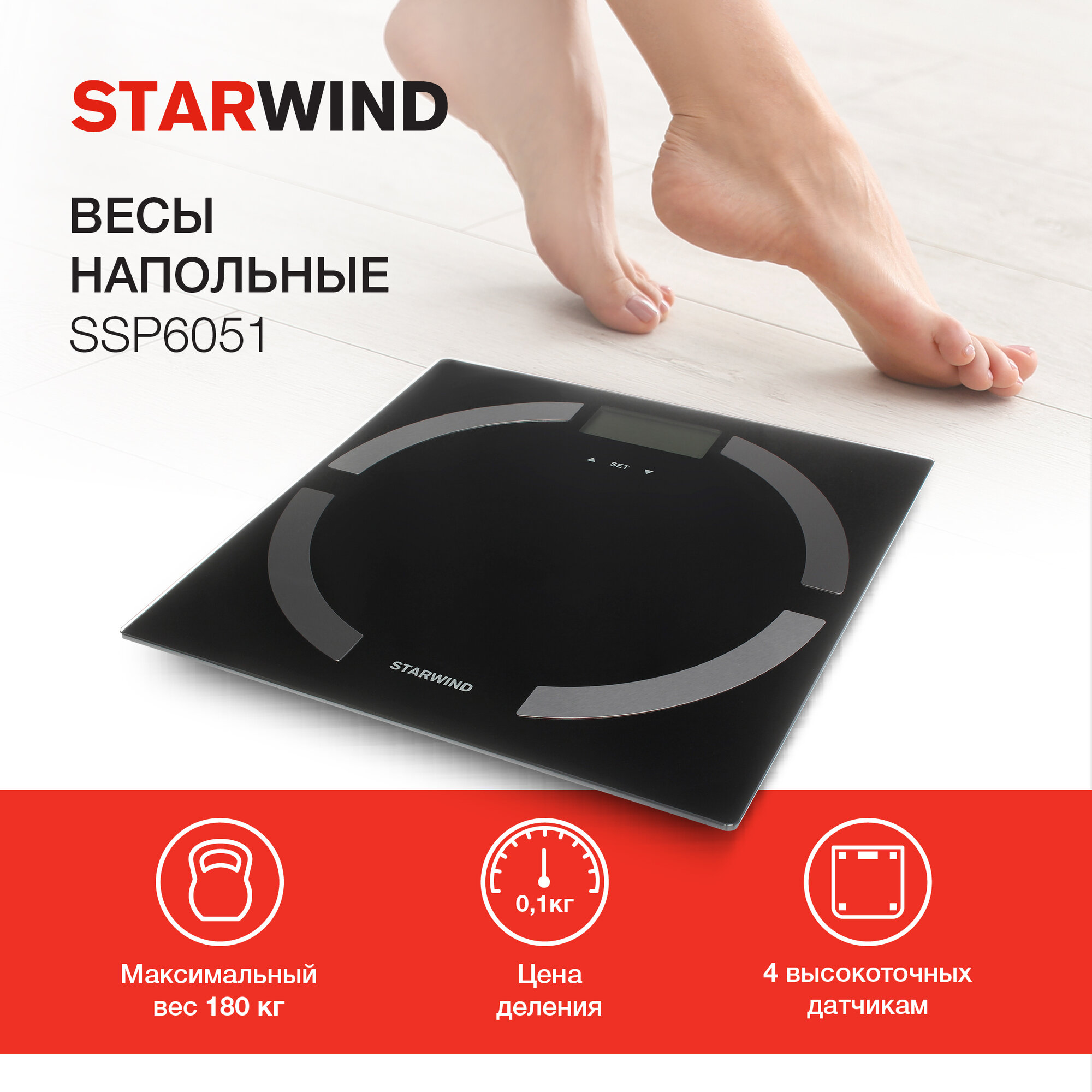 Напольные весы STARWIND SSP6051, до 180кг, цвет: черный