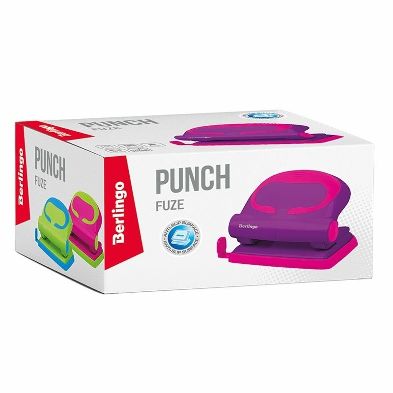 Дырокол Berlingo "Fuze" 20л., пластиковый, фиолетовый, с линейкой, 311009