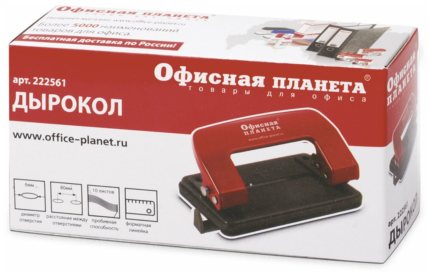 Дырокол Офисная планета, до 10 листов, красный (222561) интересное: