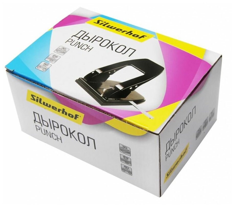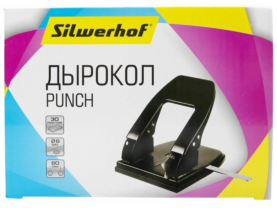 Дырокол Silwerhof макс.:30лист. металл черный отв.:2 интересное:
