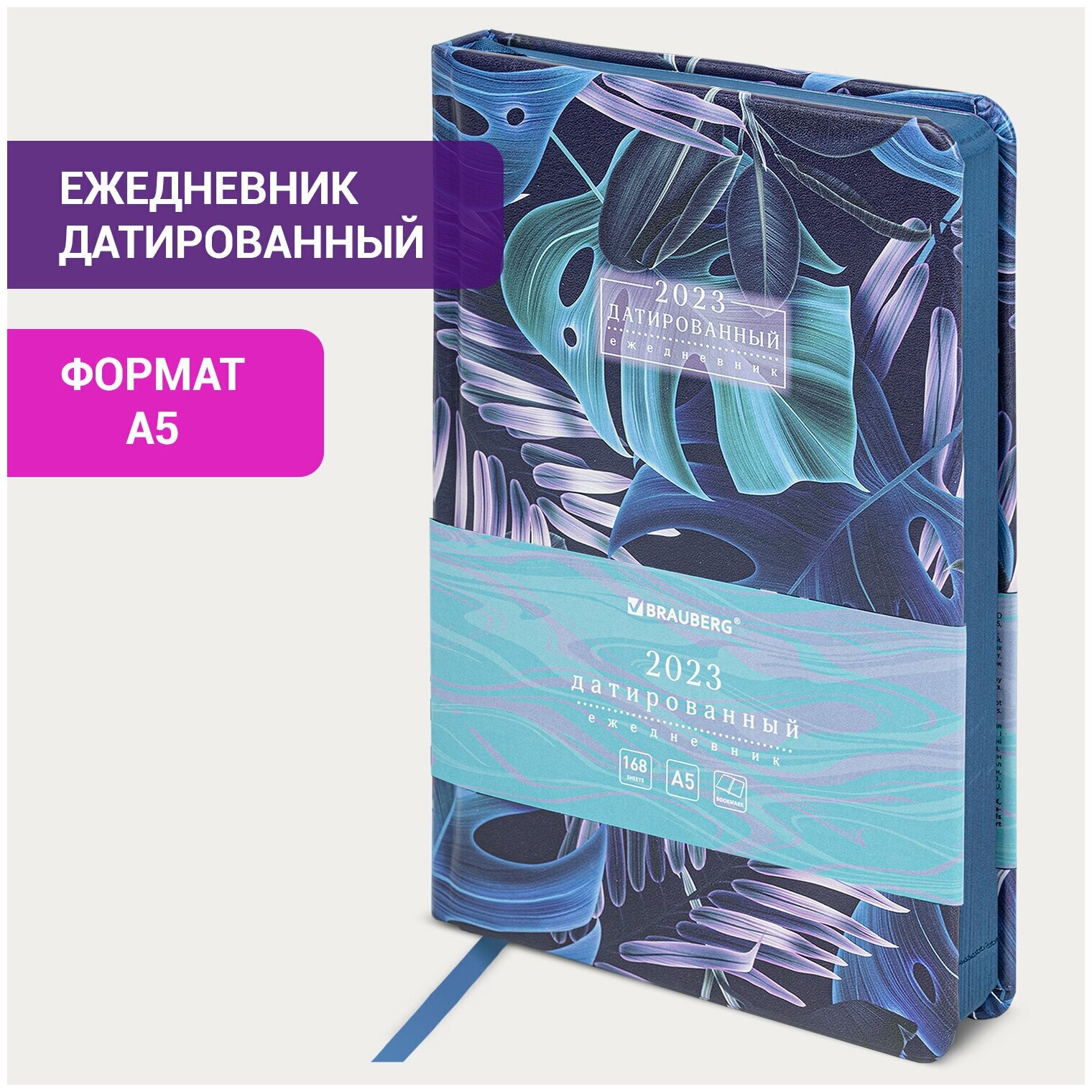 Купить Ежедневник датированный 2023 А5 138x213 мм BRAUBERG "Vista", под кожу, "Tropics", 114134