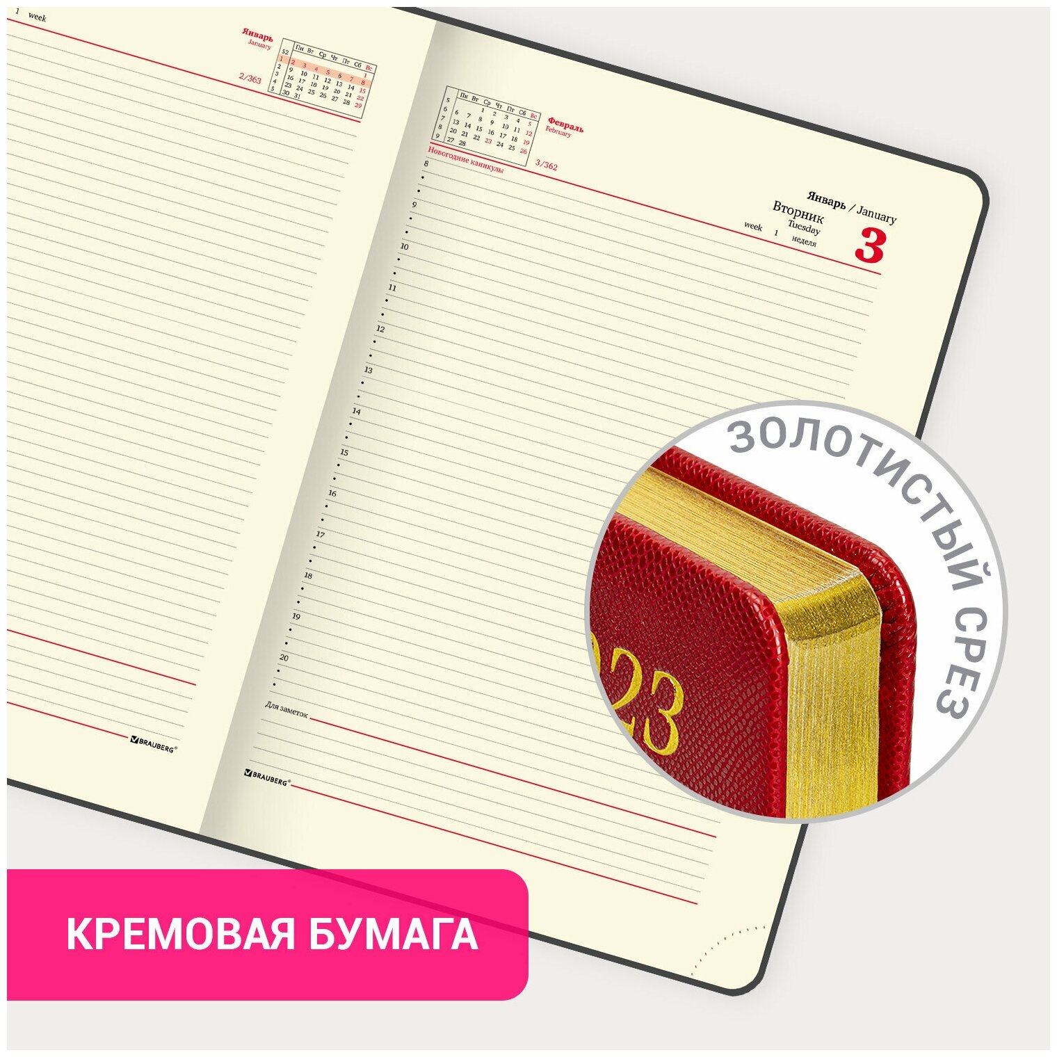 Купить Ежедневник датированный 2023 большой формат 210х297 мм А4, BRAUBERG "Iguana", красный, 113912