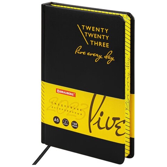 Купить Ежедневник датированный BRAUBERG 2023 А5 138x213 мм "Chameleon", под кожу, черный/желтый, 114107