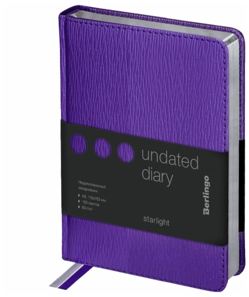 Ежедневник недатированный Berlingo A6, 160 листов, кожзам, "Starlight", серебряный срез, фиолетовый (UD0_83605)