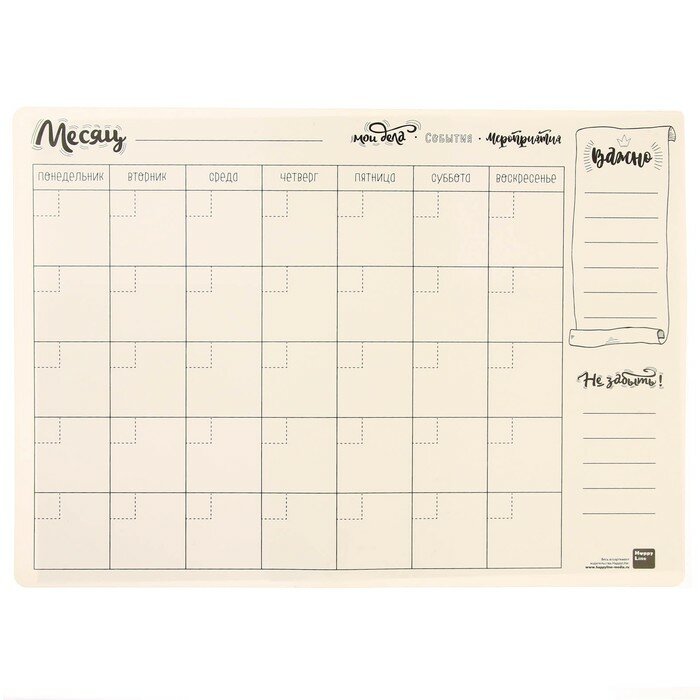 Планер на месяц HappyLine, белый, 48*34см, стираемая поверхность