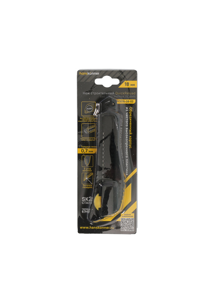 Нож HANSKONNER 18мм, обрезиненный корпус, быстрая разблокировка, лезвие SK2 0.7мм