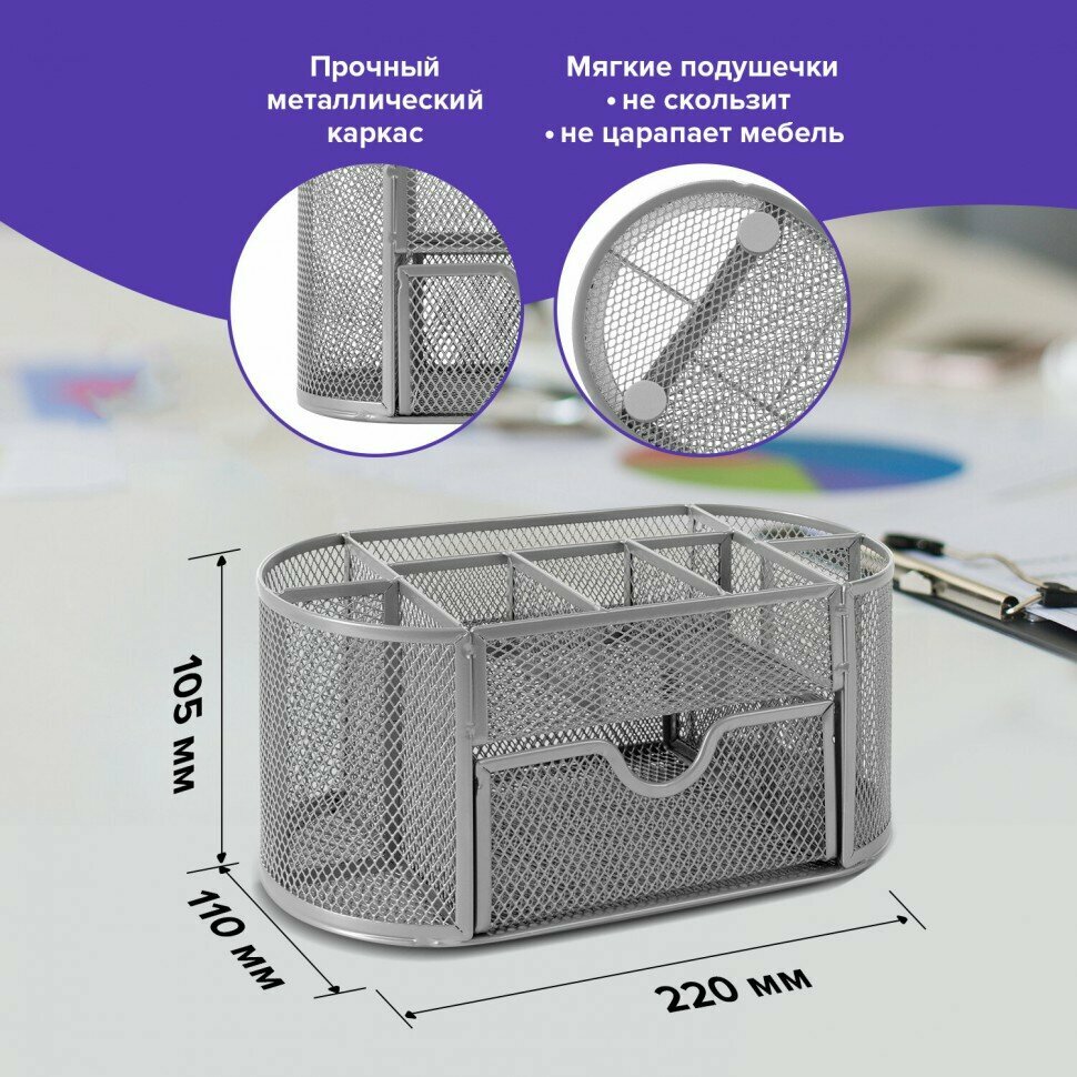 Ниже Вы можете прочитать отзывы на Подставка-органайзер металлическая BRAUBERG, 9 секций, 105х220х110 мм, серебро, 237419, ознакомится с подробными характеристиками, посмотреть интересные обзоры и фотографии на Подставка-органайзер металлическая BRAUBERG, 9 секций, 105х220х110 мм, серебро, 237419.