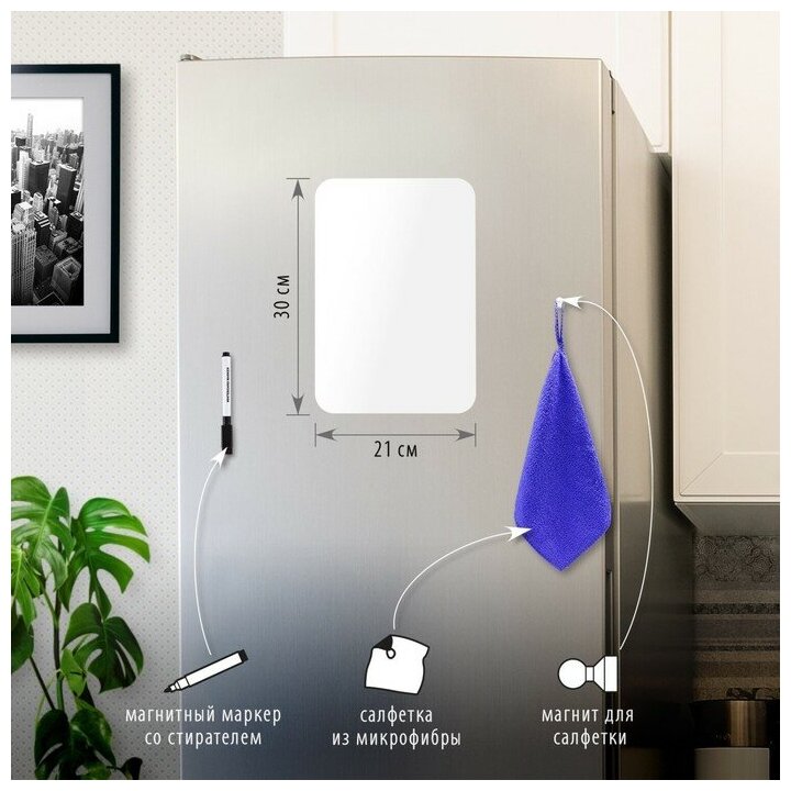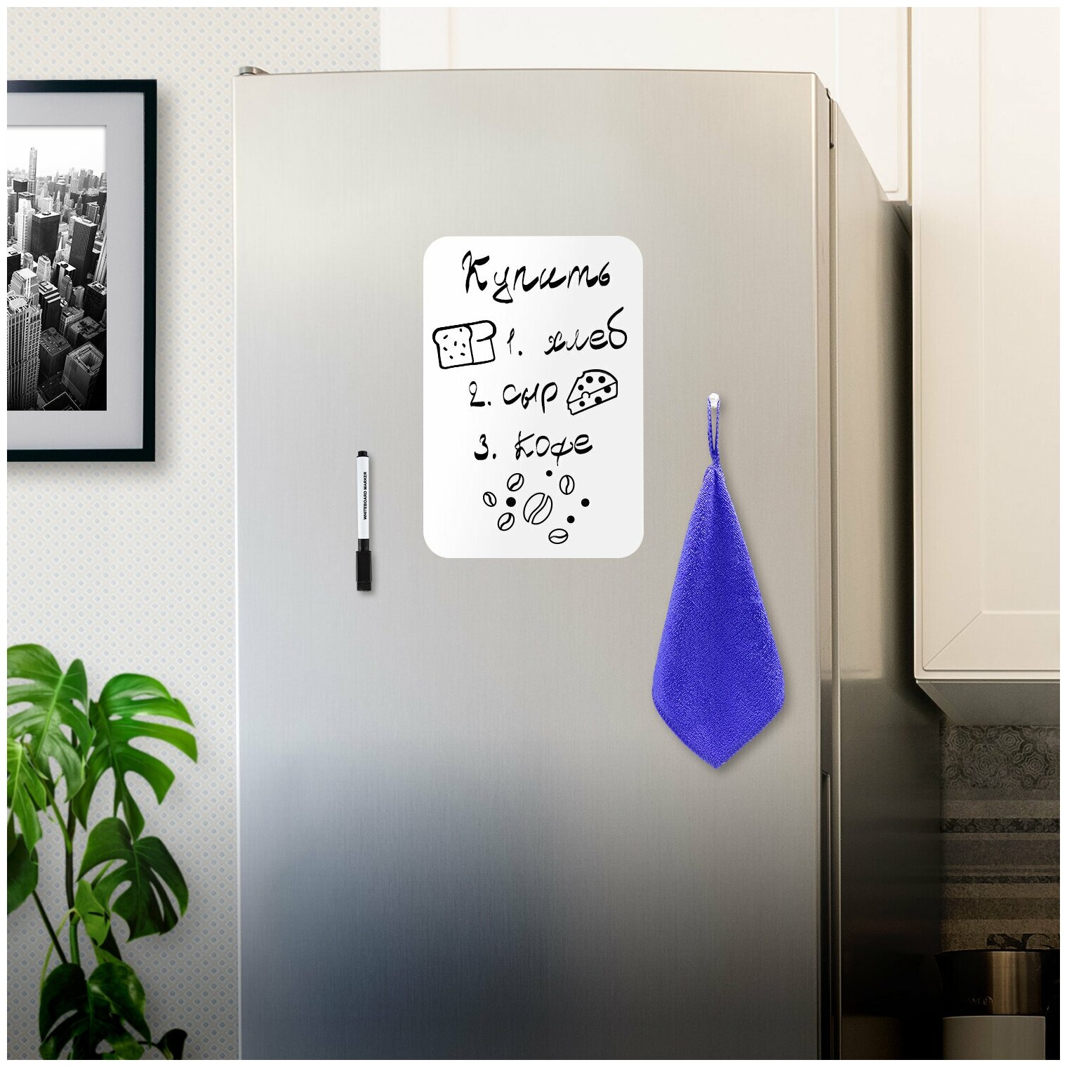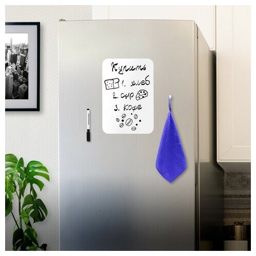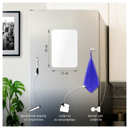 Доска на холодильник магнитно-маркерная 30х21 см с маркером, магнитом и салфеткой, BRAUBERG