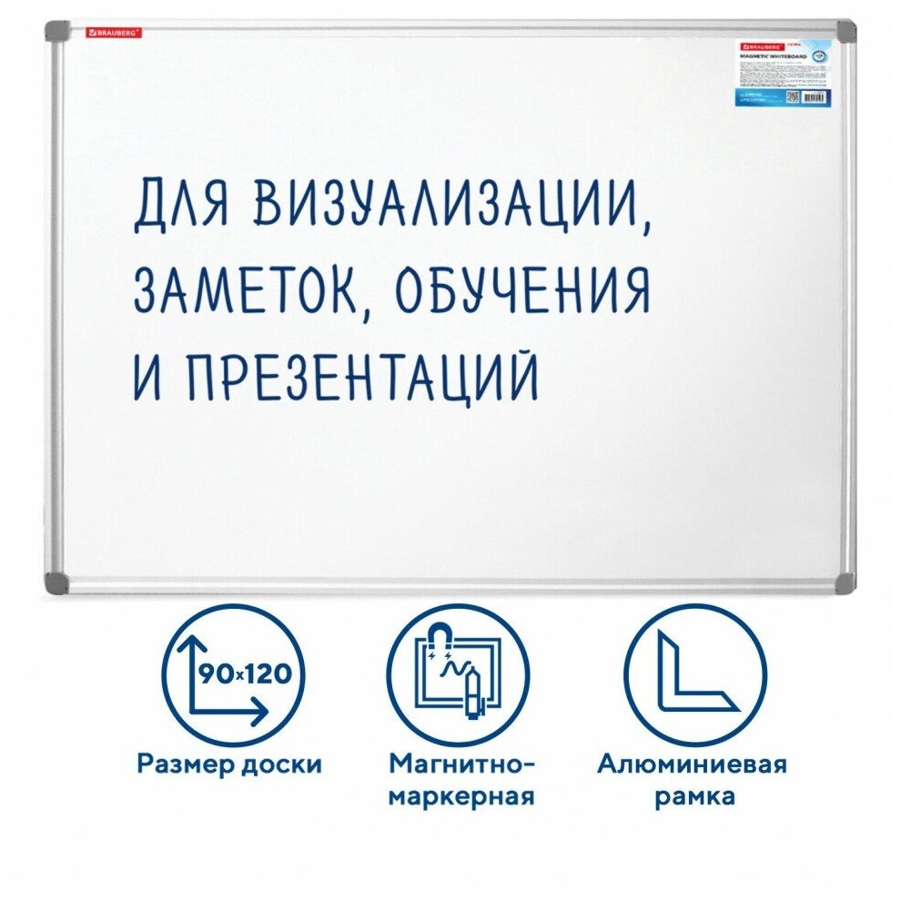 Доска магнитно-маркерная 90х120 см, алюминиевая рамка, BRAUBERG Extra, 237555