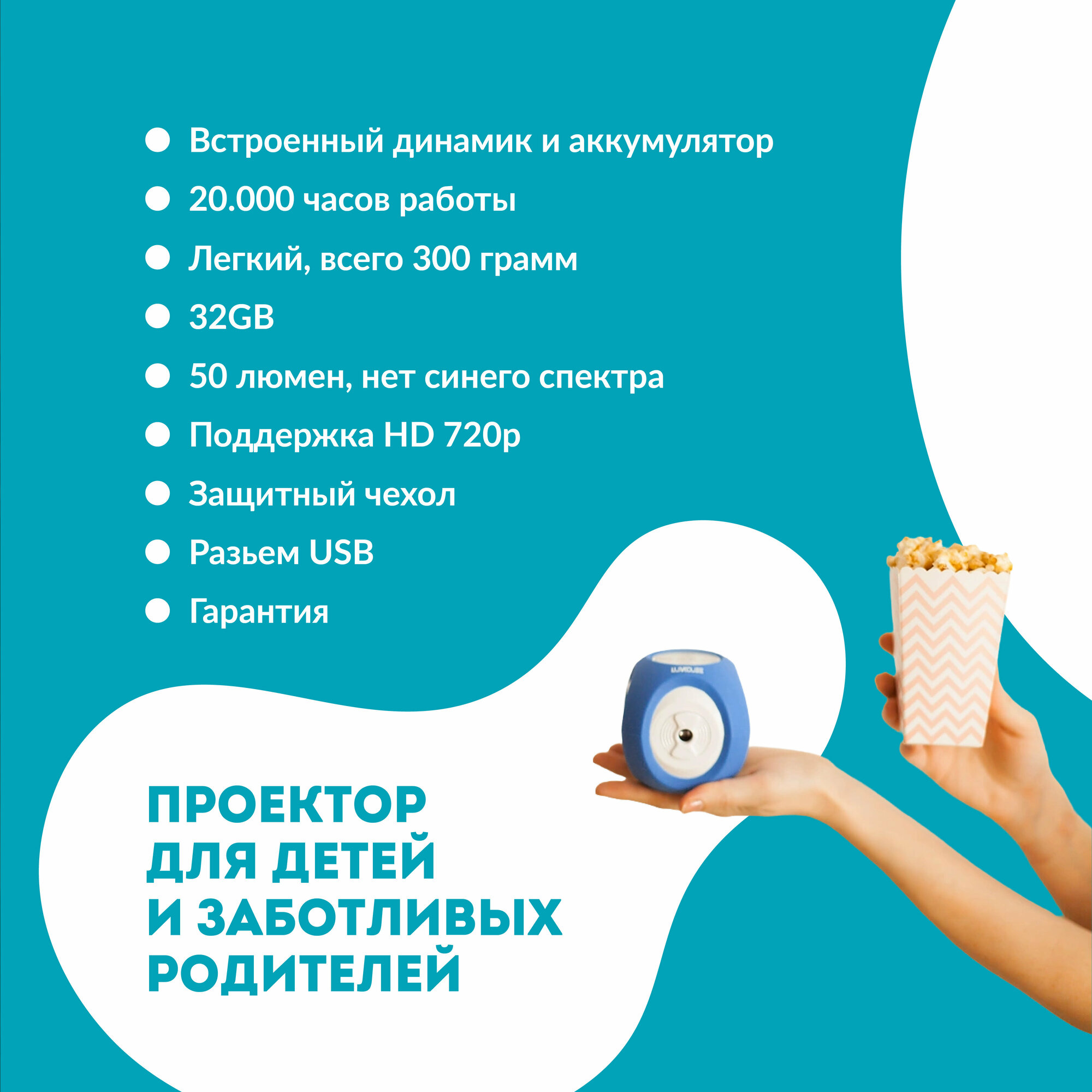 Детский портативный мини-проектор / Мини-кинотеатр с динамиком для мультиков LUMICUBE, синий
