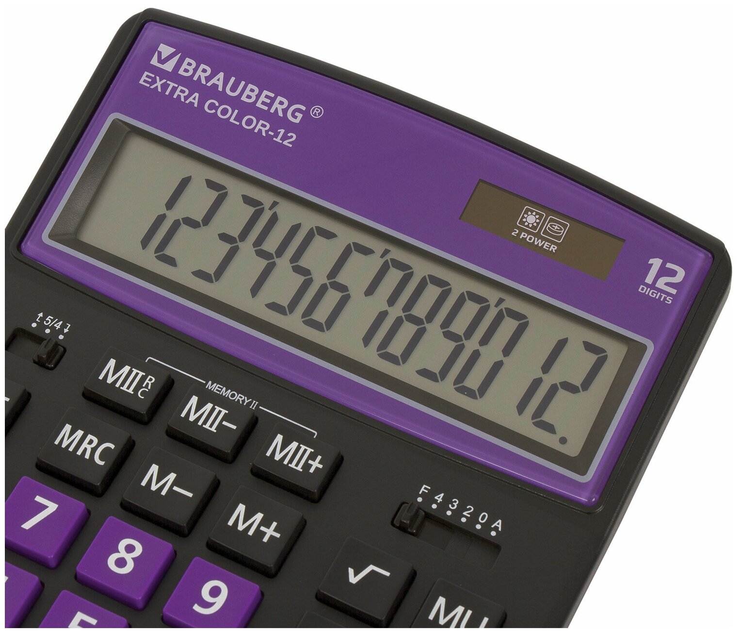 Калькулятор настольный BRAUBERG EXTRA COLOR-12-BKPR (206x155мм), 12 разряд, черно-фиолетовый, 250480