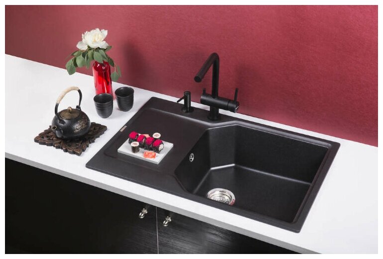 Кухонная мойка с крылом OMOIKIRI Yonaka 78-LB-BL, искусственный гранит/большая чаша/черный