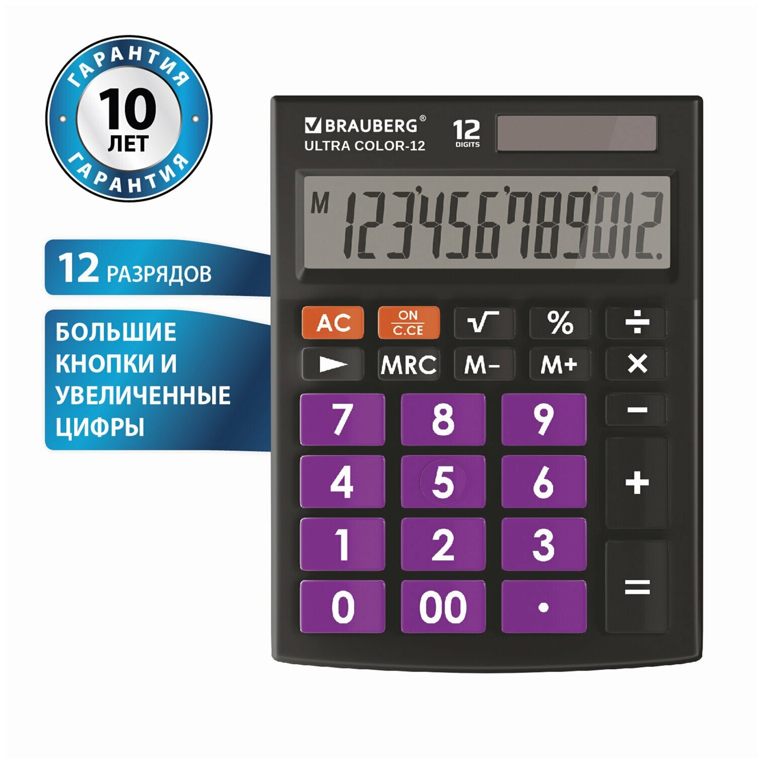 Калькулятор настольный BRAUBERG Ultra Color-12, черно-фиолетовый