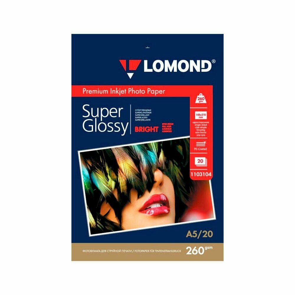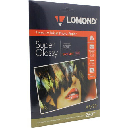 Фотобумага Lomond A5, 260 г/м2, одностороняя, суперглянцевая, 20л (1103104)