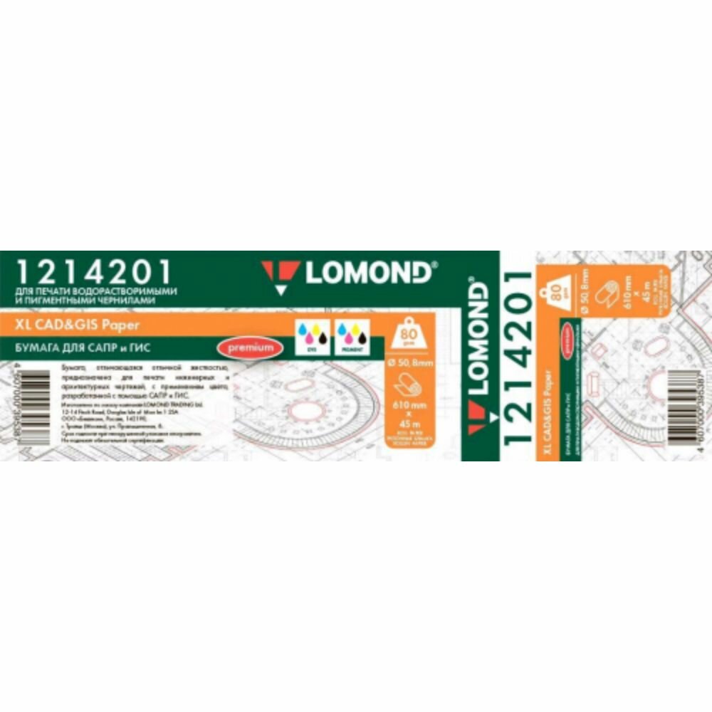 Бумага без покрытия инженерная Lomond XL CAD and GIS premium рулон A1+ 24'' (610 мм 45 м) офсетная 80 г/м2, втулка 50.8 мм (1214201)