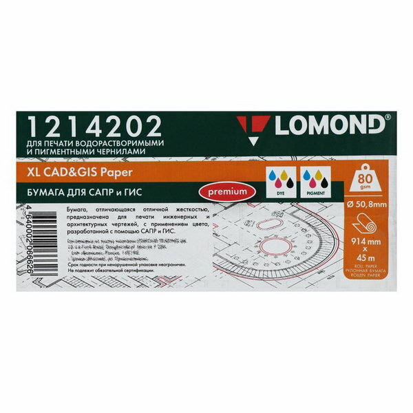 Бумага без покрытия инженерная Lomond XL CAD and GIS premium рулон A0+ 36'' (914 мм 45 м) офсетная 80 г/м2, втулка 50.8 мм (1214202)