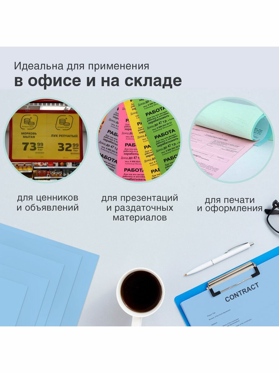 Бумага цветная для принтера офисная Brauberg, А4, 80 г/м2, 100 листов, (5 цветов х 20 листов), пастель, для офисной техники, 112460