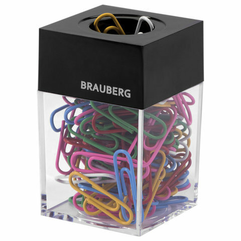 Скрепочница магнитная BRAUBERG 100 цветных скрепок 28мм прозр корпус черная крышка 228401 1 шт
