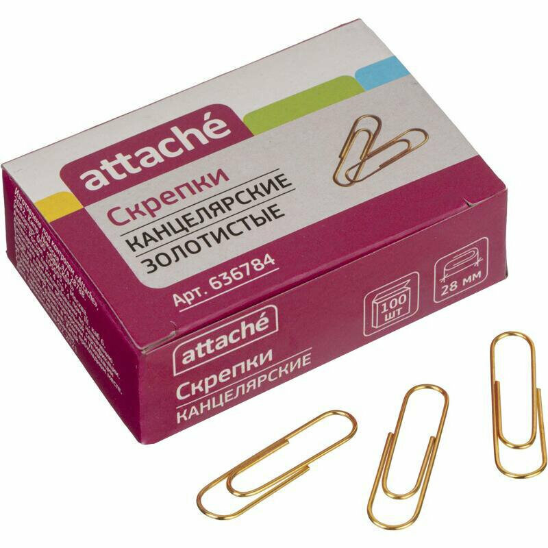 Купить Скрепки Attache металлические золотистые 28 мм (100 штук в упаковке), 636784