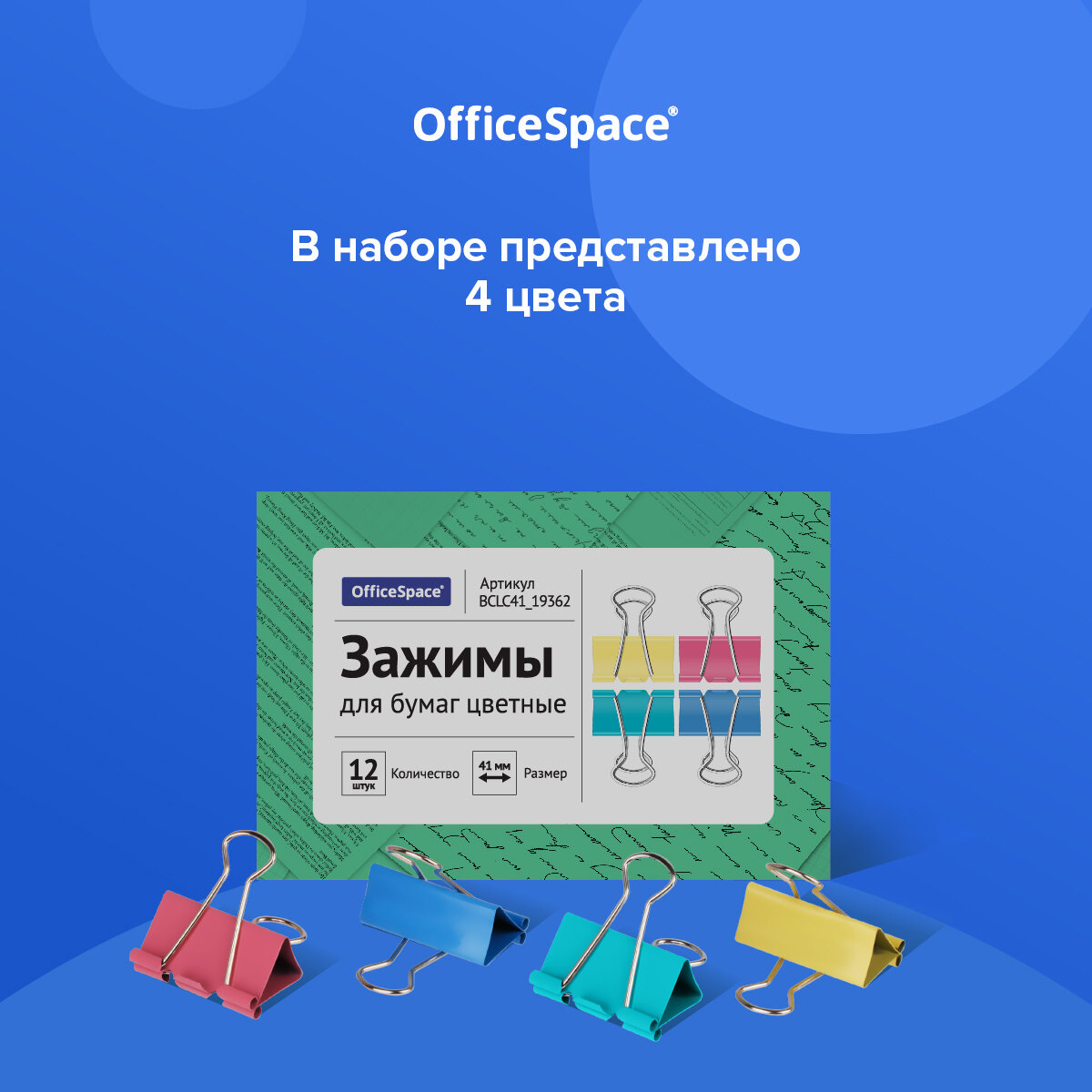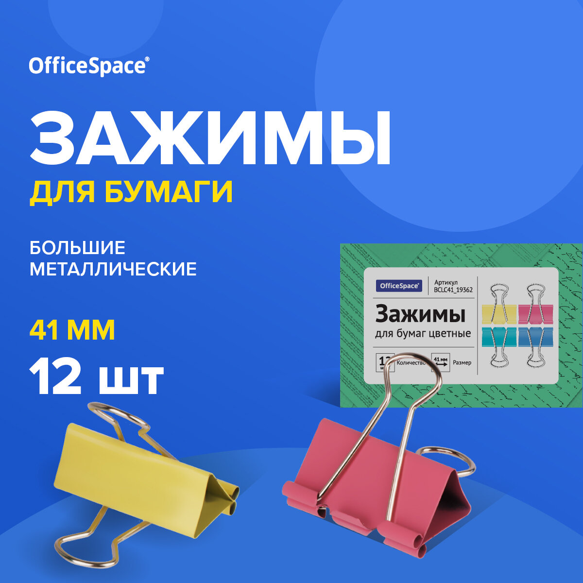 Купить Зажимы для бумаг металлические OfficeSpace (41мм, до 200 листов, цветные) 12шт. (BCLC41_19362)