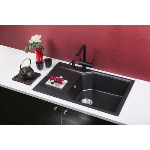 Кухонная мойка с крылом OMOIKIRI Yonaka 78-LB-BL, искусственный гранит/большая чаша/черный