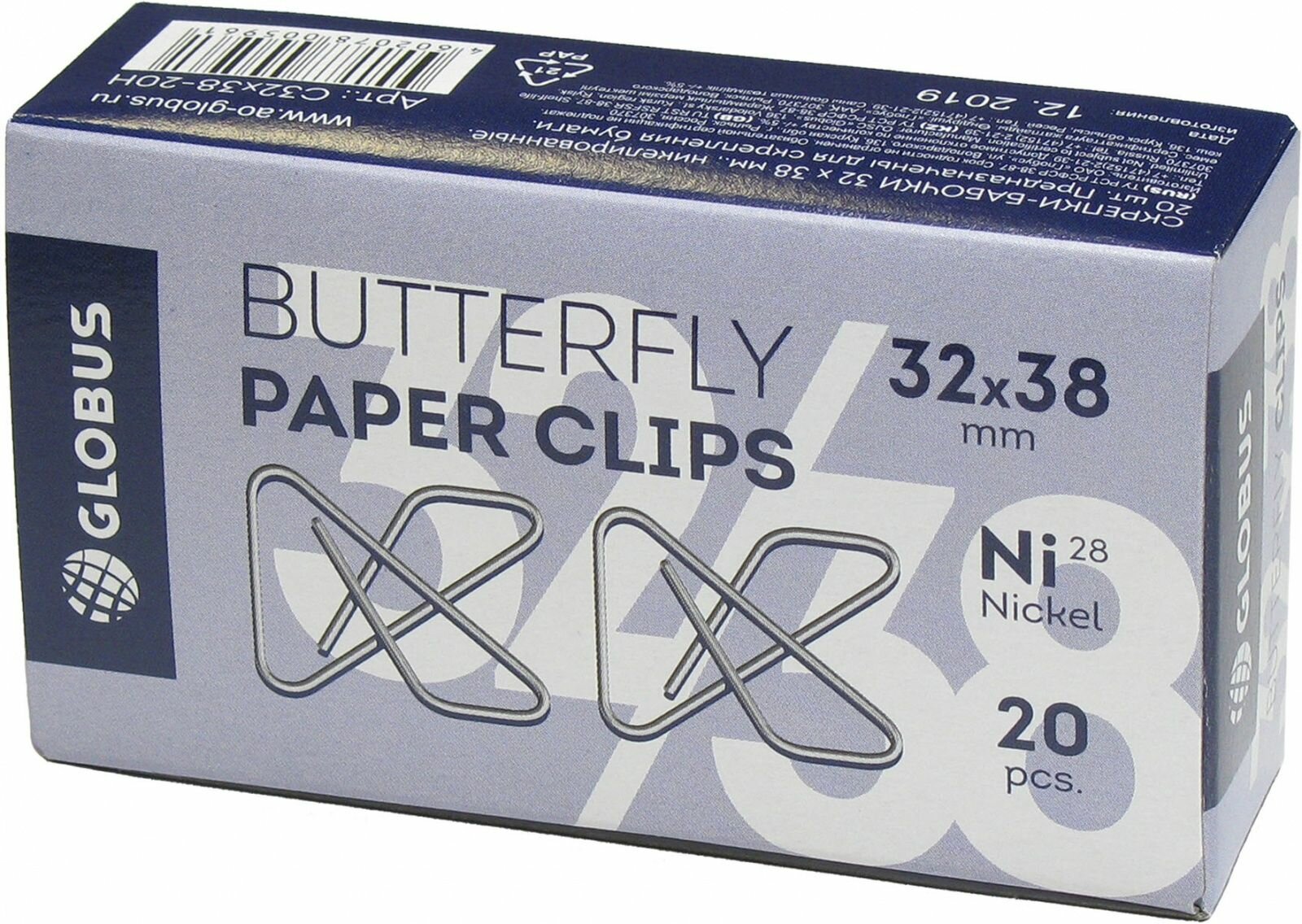 Скрепки GLOBUS бабочка, 38х38 мм, никелированные, 20 штук интересное: