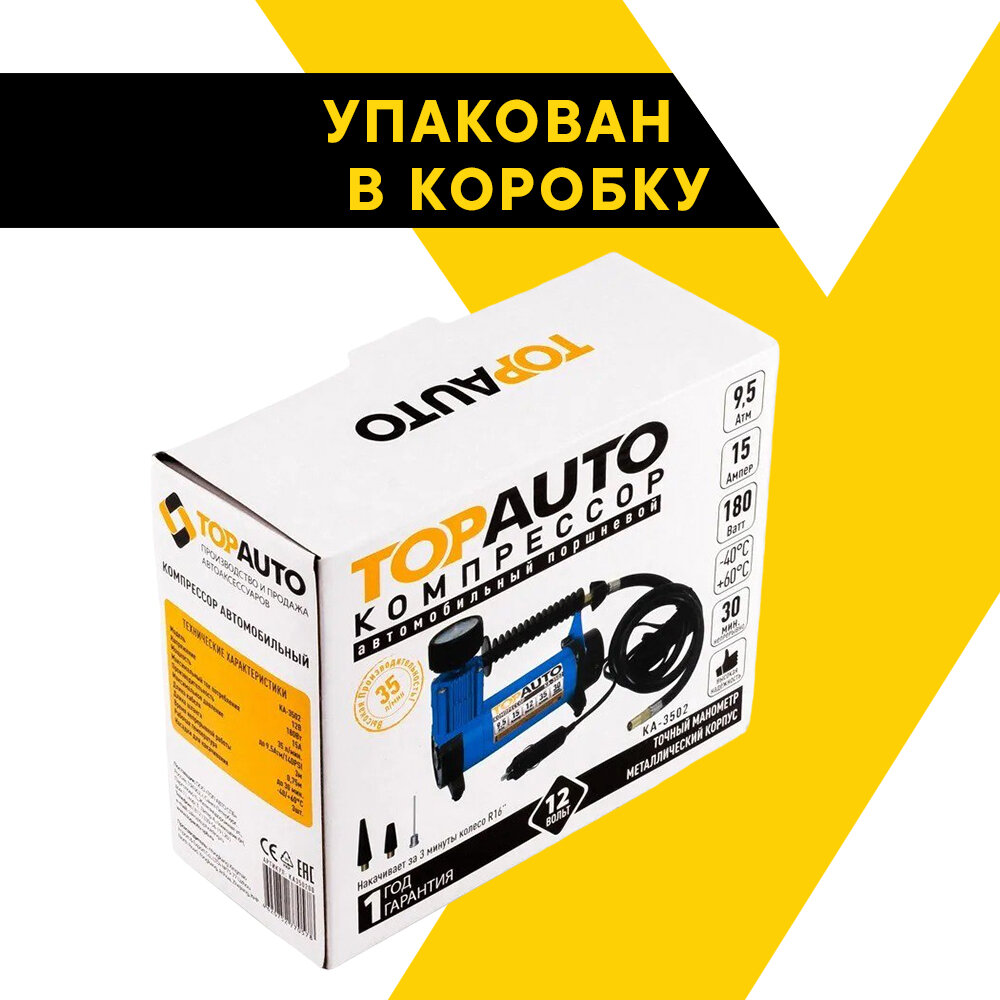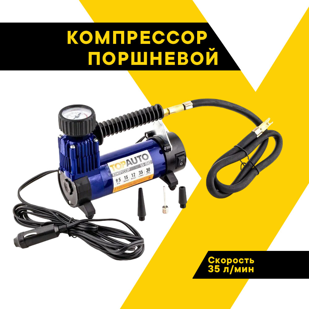 Компрессор автомобильный поршневой ТОП авто, 35 л/мин, 9,5 атм, КА-3502 интересное: