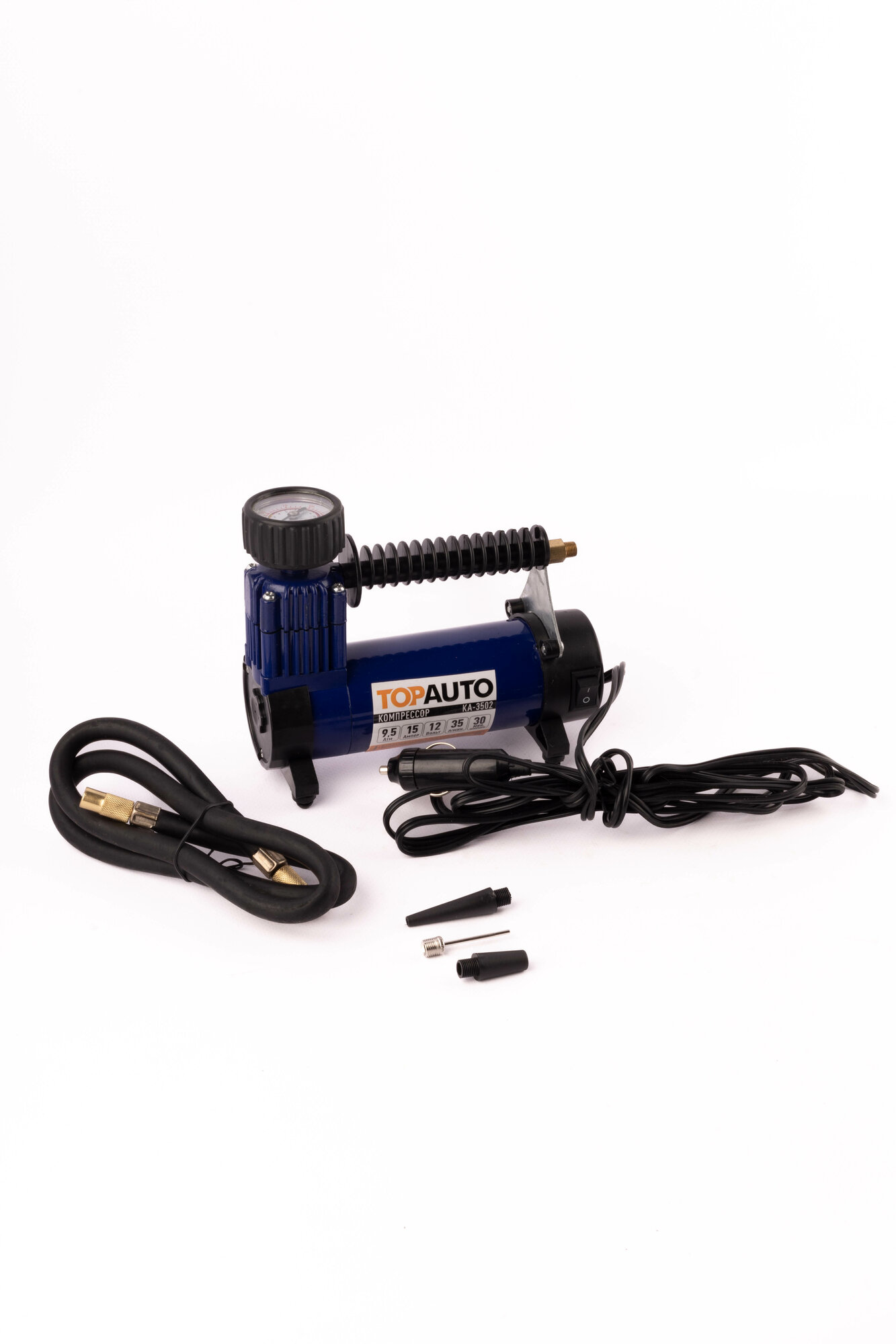 Компрессор автомобильный ТОП Авто Ка-3502, 35 л/мин, до 9,5 Атм/140PSI, универсальные насадки, метал .