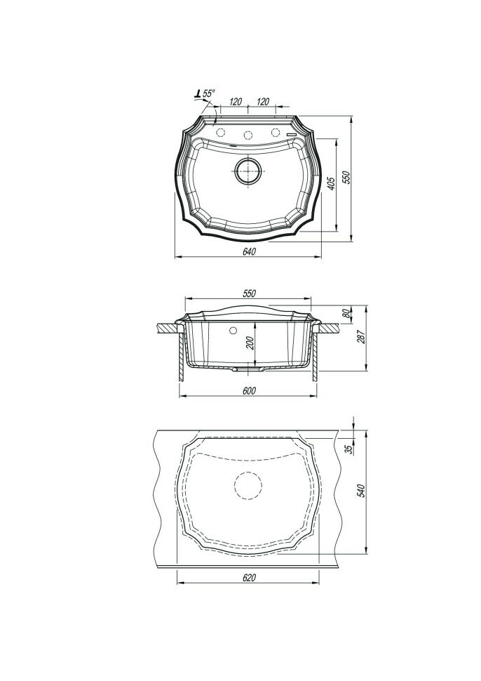 | Отзыв: | Есть отверстие для смесителя, встроенного фильтра, встроенного диффузора жидкого мыла. |