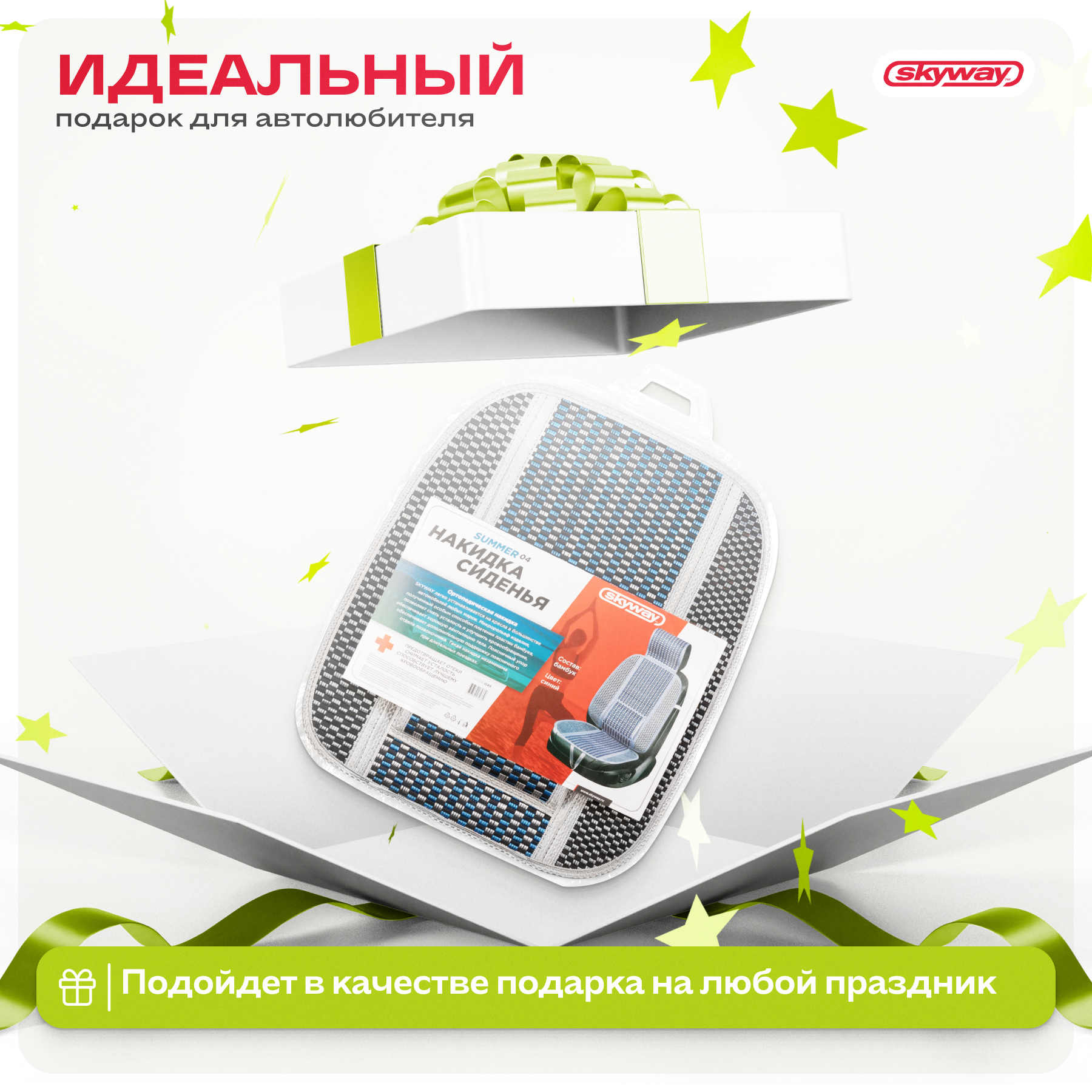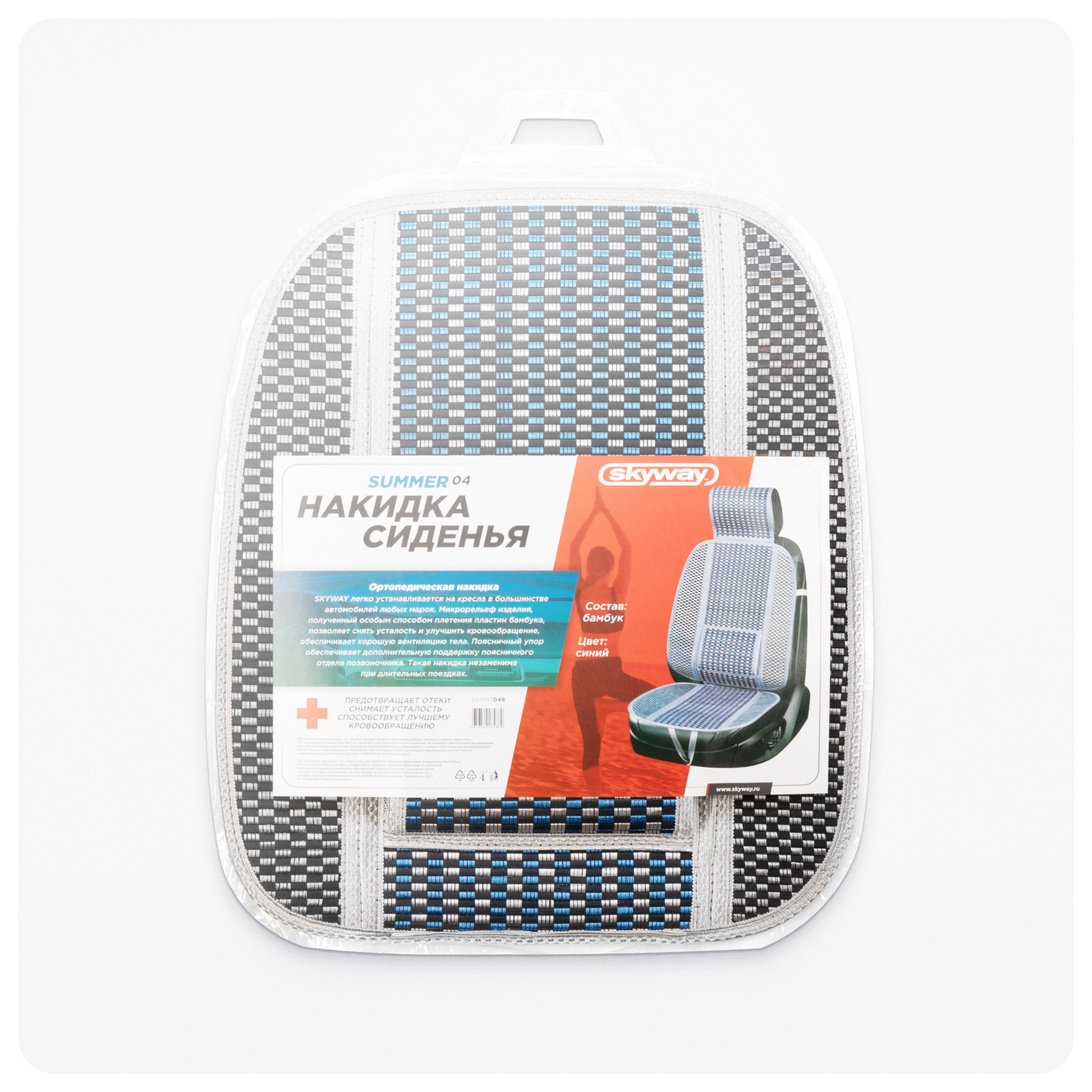 Купить Накидка сиденья бамбук SKYWAY Summer-04 с поддержкой спины синий 1 шт, S01302049