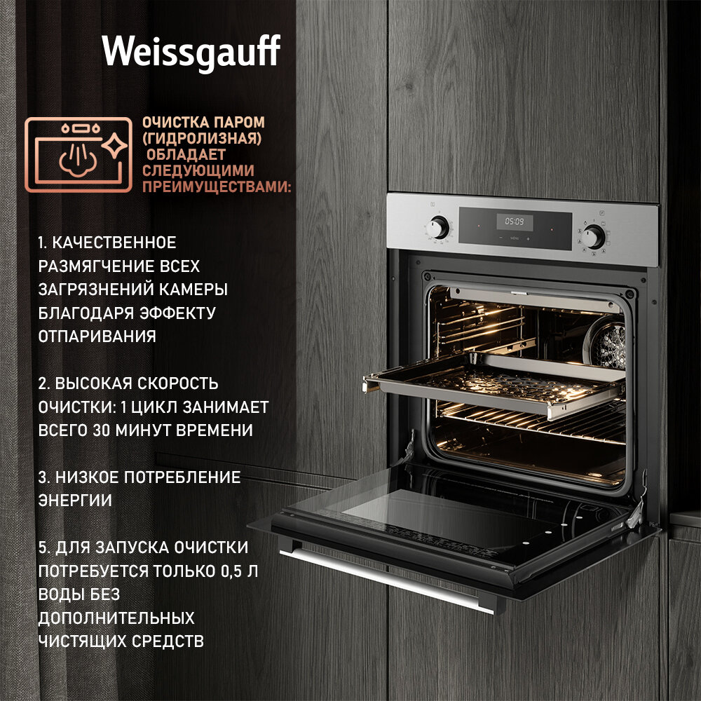 Духовой шкаф электрический Weissgauff EOA 39 PDX интересное: