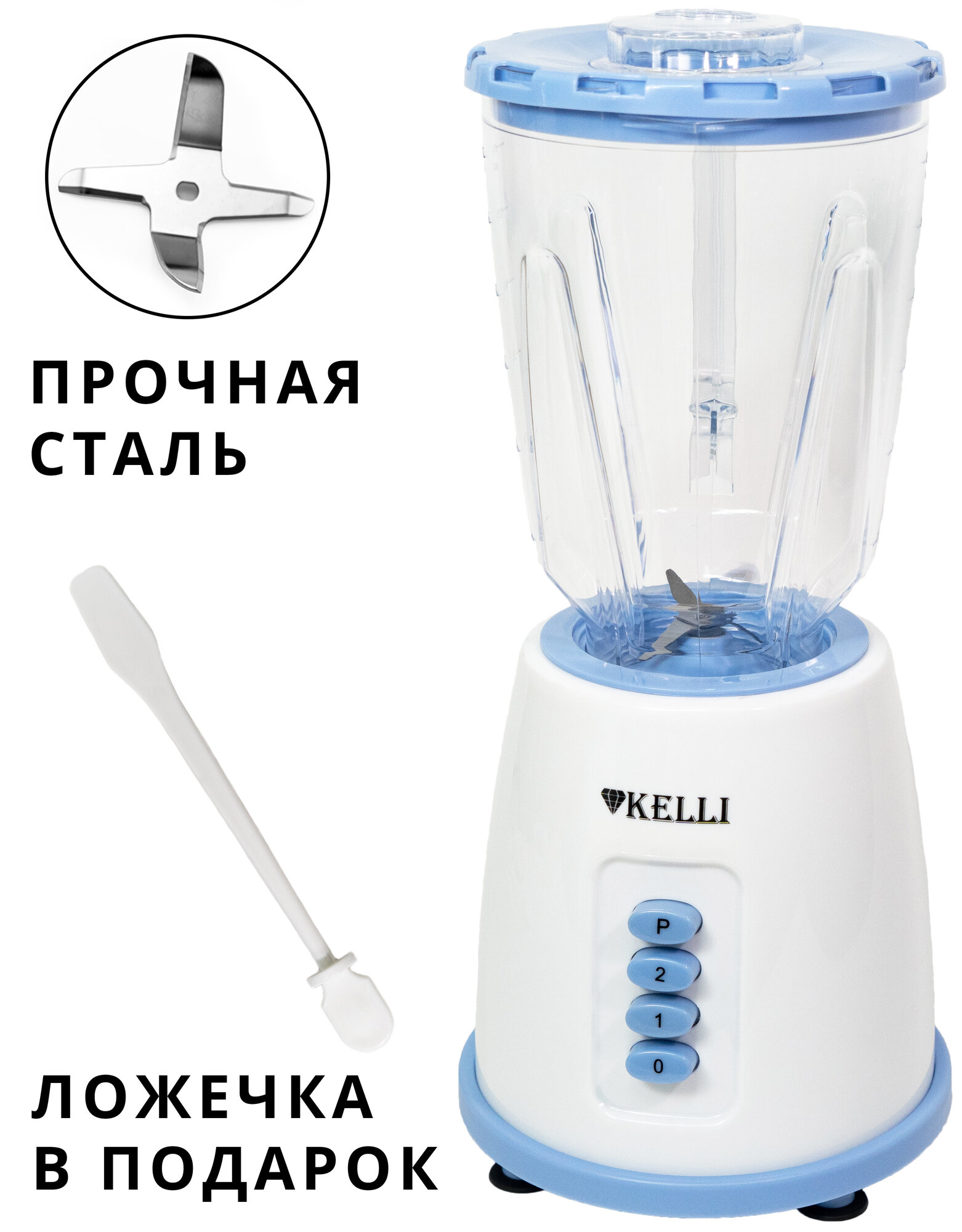 Стационарный домашний блендер Kelli, 1000Вт, 1.5л объем чаши, 2 скорости, импульсный режим, ложечка