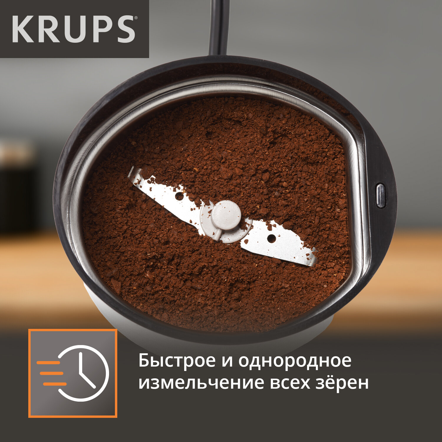 Кофемолка электрическая Krups Fast Touch GX204D10, 85 гр, 2 лезвия, серебристый