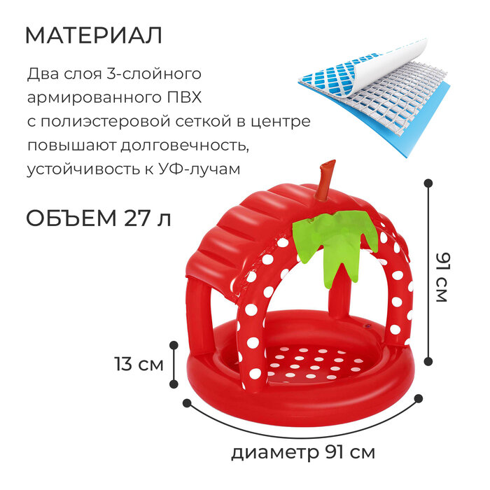 Bestway Детский бассейн с навесом Земляничка 91*91 см 52387