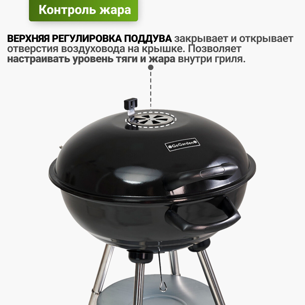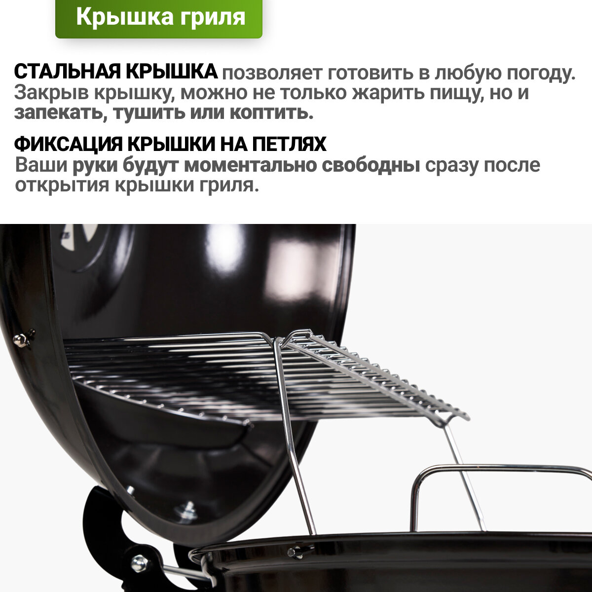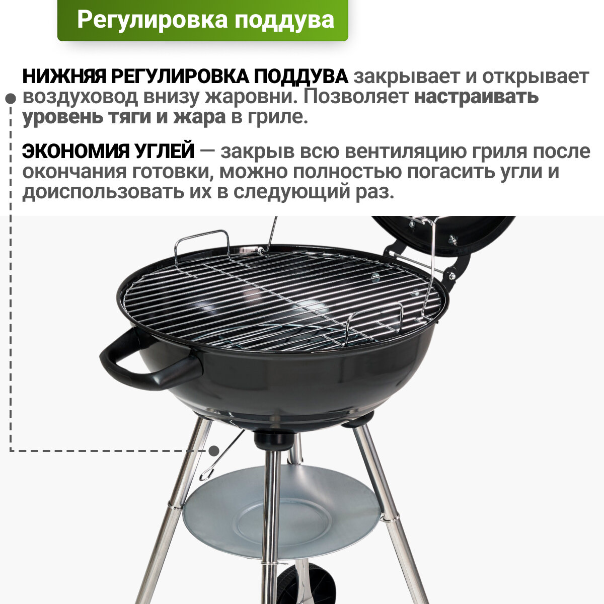 | Дополнительная информация | дополнительная решетка для разогрева; размер жаровни 47.5 см, размер грилевой решетки 43 см, высота грилевой решетки 72 см |