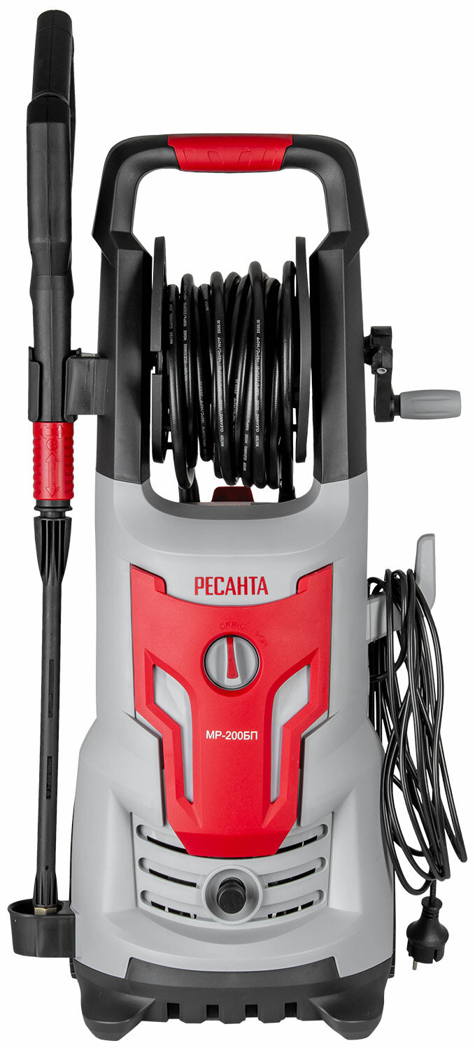 Мойка высокого давления РЕСАНТА МР-200БП, 2500 Вт, 200 Бар, 420 л/ч, шланг–8 м, барабан для шланга, проф. пеногенератор