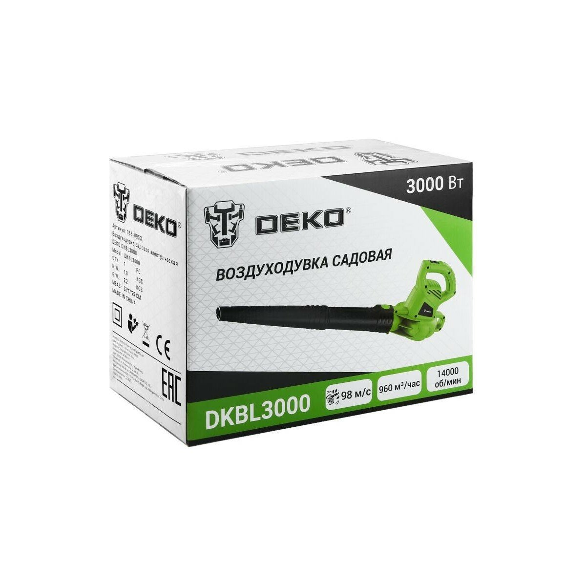 Воздуходувка Deko DKBL3000 зеленая 065-0953 .