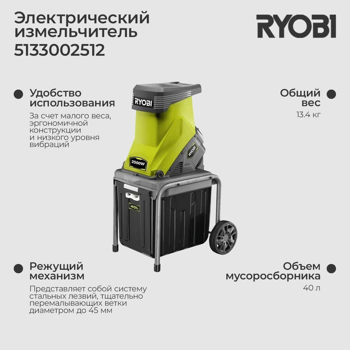 Измельчитель электрический RYOBI RSH2545B 2.5 кВт интересное: