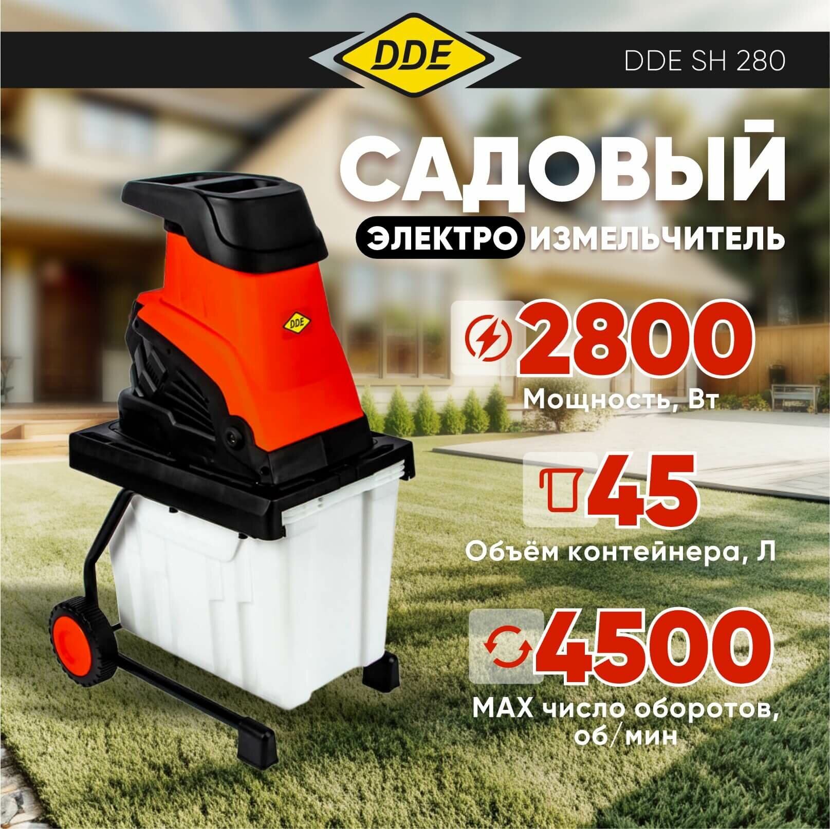 Измельчитель электрический садовый DDE SH280 (2,8 кВт, ножи, толщина до 45 мм, короб для сбора 45 л)