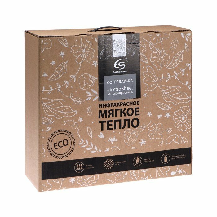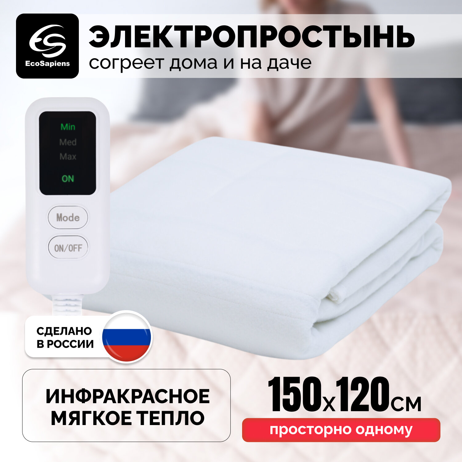 Электропростыня EcoSapiens Согревай-ка электрическая простынь с подогревом, 3 программы до 6 часов работы, автоотключение, 150х120 см