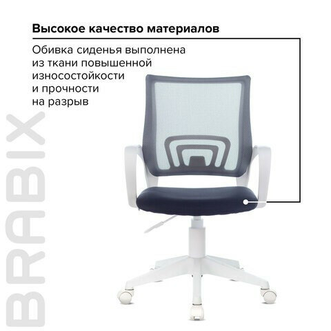 Кресло Brabix fly, mg-396w, с подлокотниками, пластик белый, сетка, темно-серое (MG-396W_532400)