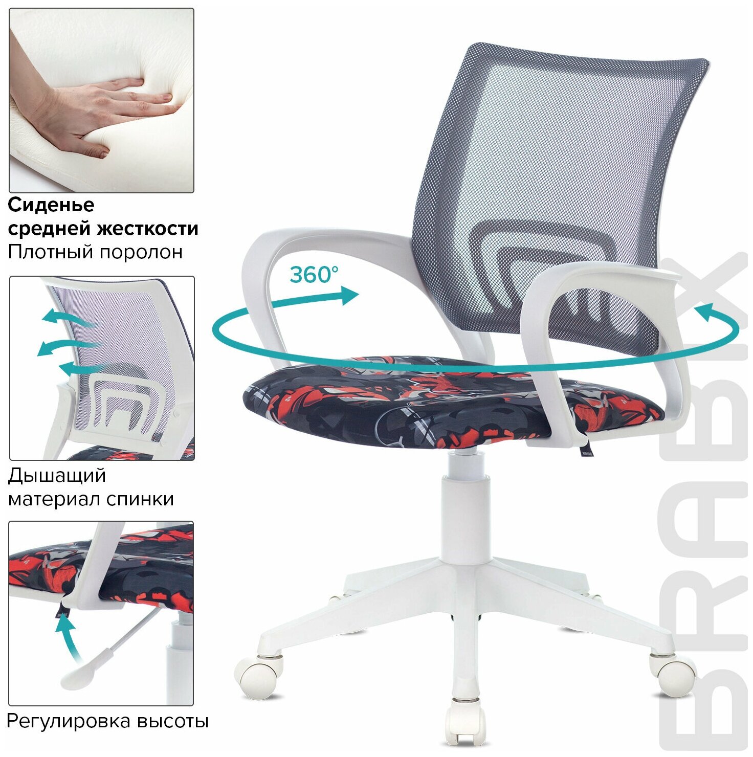 Кресло BRABIX "Fly MG-396W", с подлокотниками, пластик белый, сетка, темно-серое, 532400, MG-396W_532400