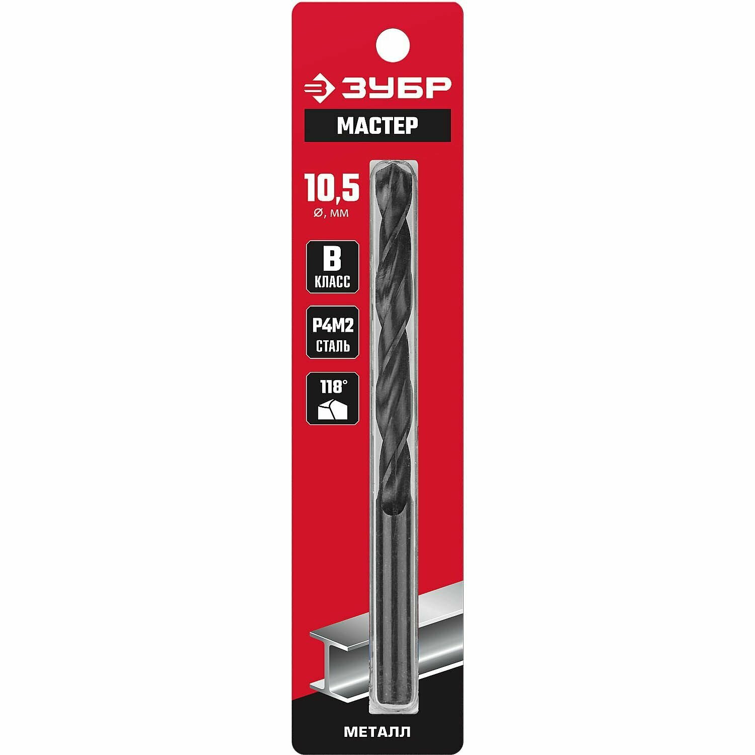 ЗУБР мастер 10.5х133мм, Сверло по металлу, сталь Р4М2, класс В, 29605-10.5