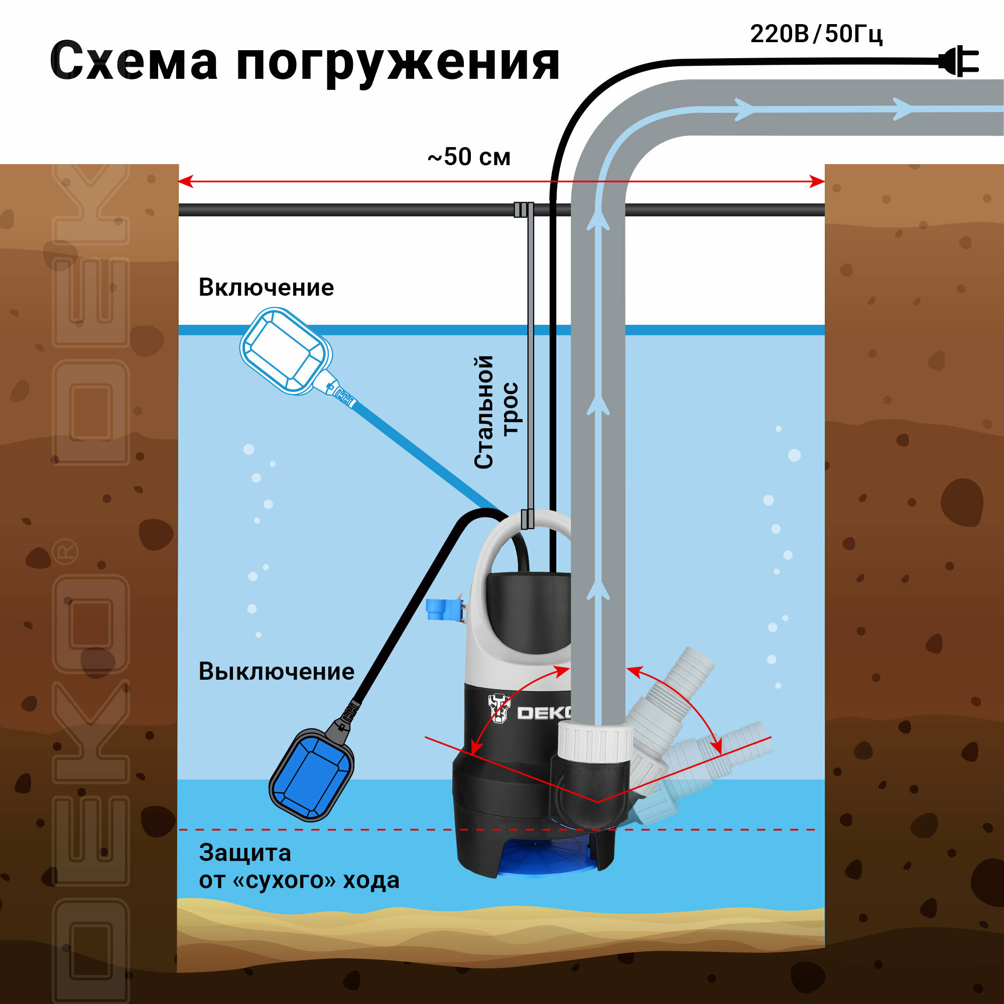 Насос дренажный Deko Dwp-900p грязевая, поплавок, 220В, 900Вт, пластик .