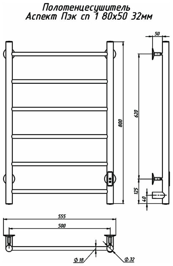 Полотенцесушитель электрический Тругор Аспект ПЭК СП 1 80х50