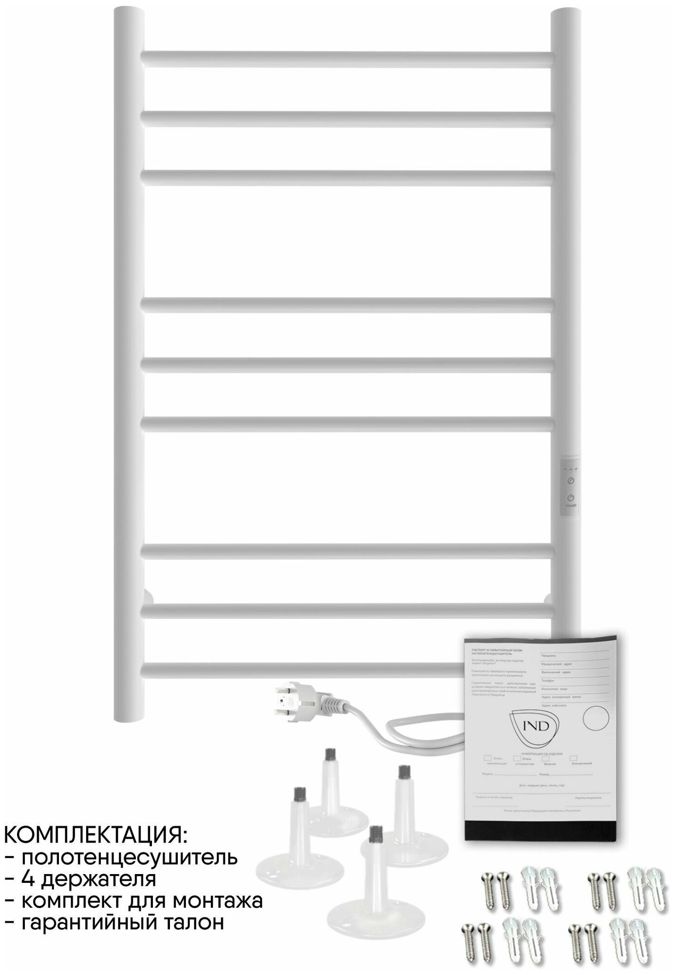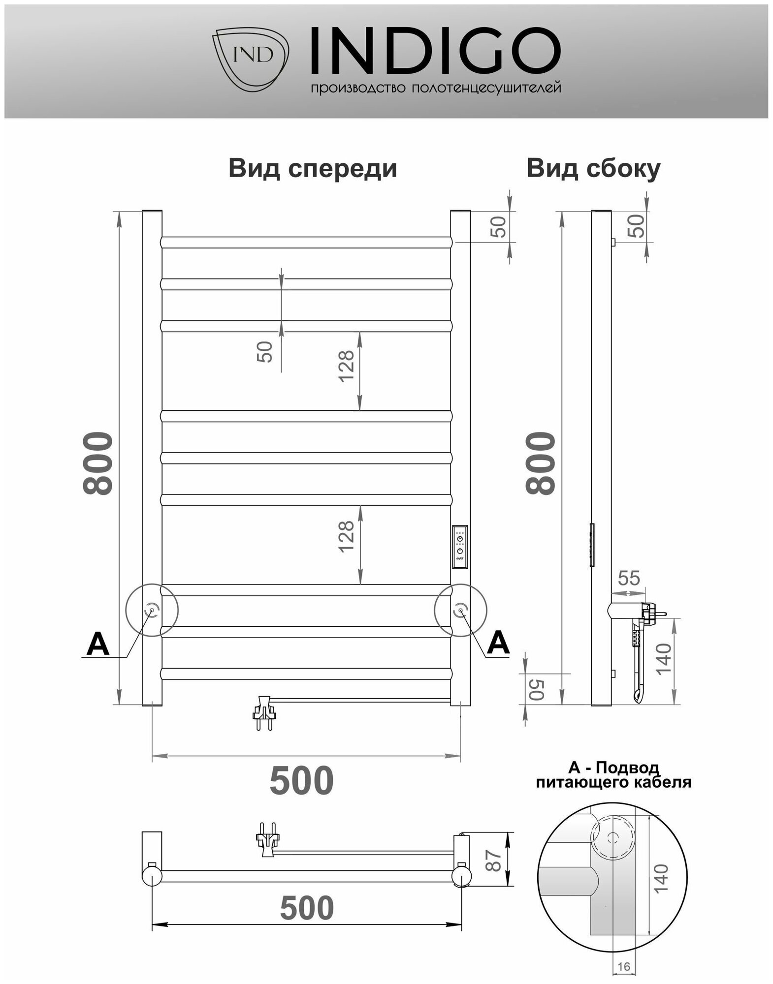 Полотенцесушитель электрический IND (INDIGO) Line Trinity 80/50 Белый матовый (таймер, скрытый монтаж, универсальное подключение: левый/правый)