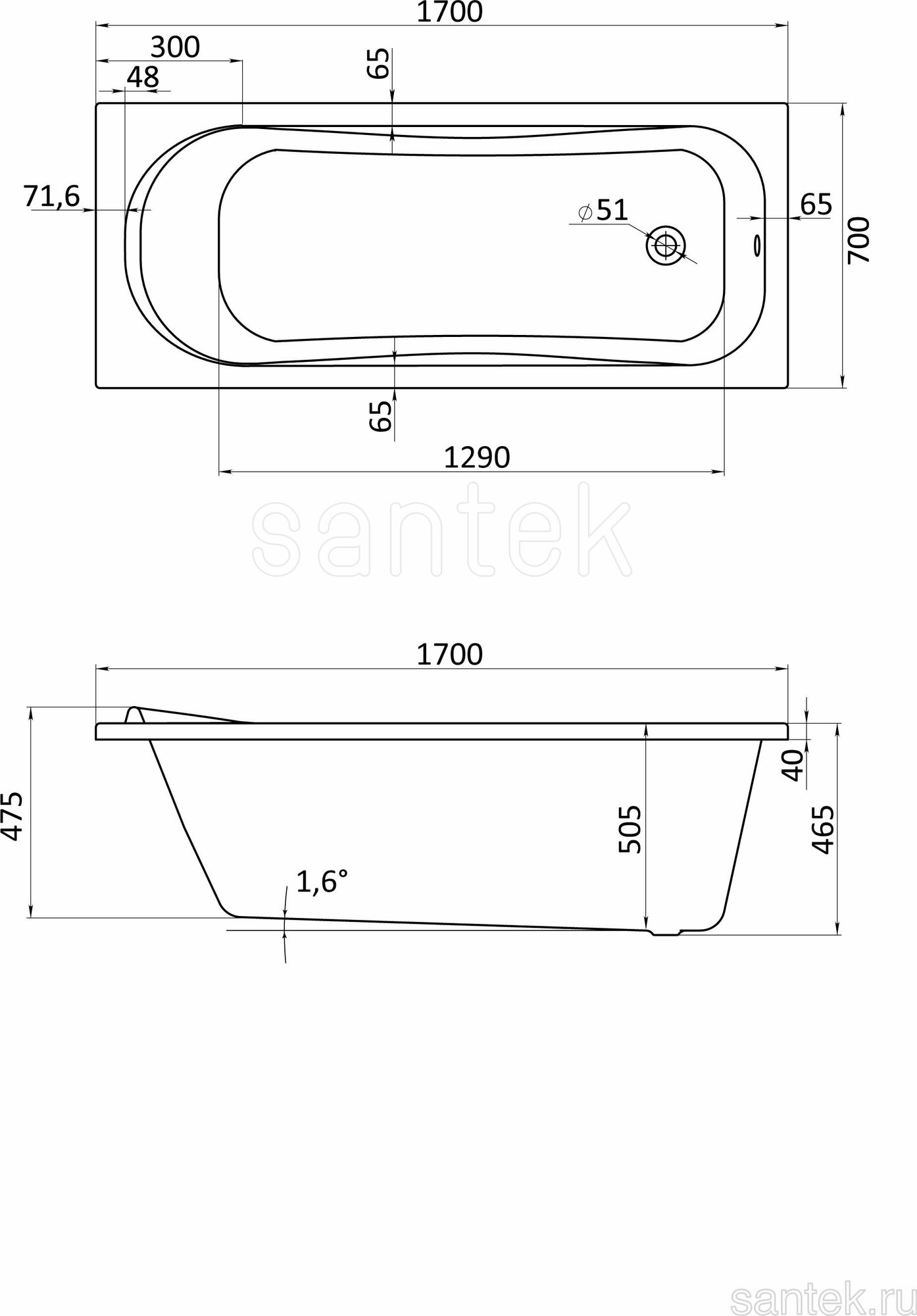 Акриловая ванна Santek Тенерифе 160x70 1.WH30.2.357 интересное: